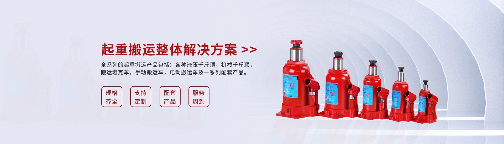 我们提供全系列的起重搬运产品,包括:各种液压千斤顶,机械千斤顶,搬运坦克车,手动搬运车,电动搬运车及一系列配套产品,规格齐全支持定制,满足您不同的工况需求。